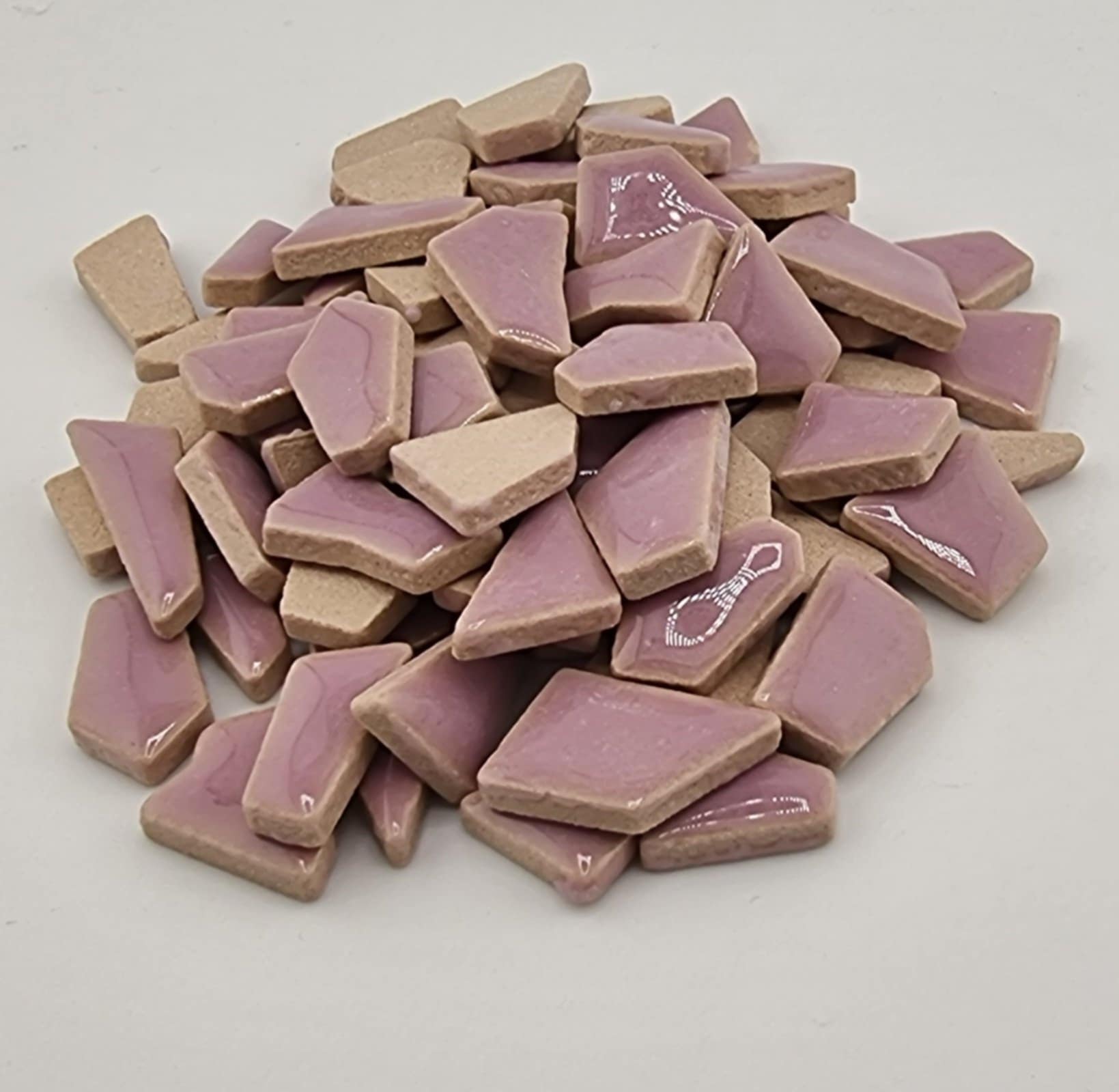 Twice fired jigsaw shaped ceramic tiles.