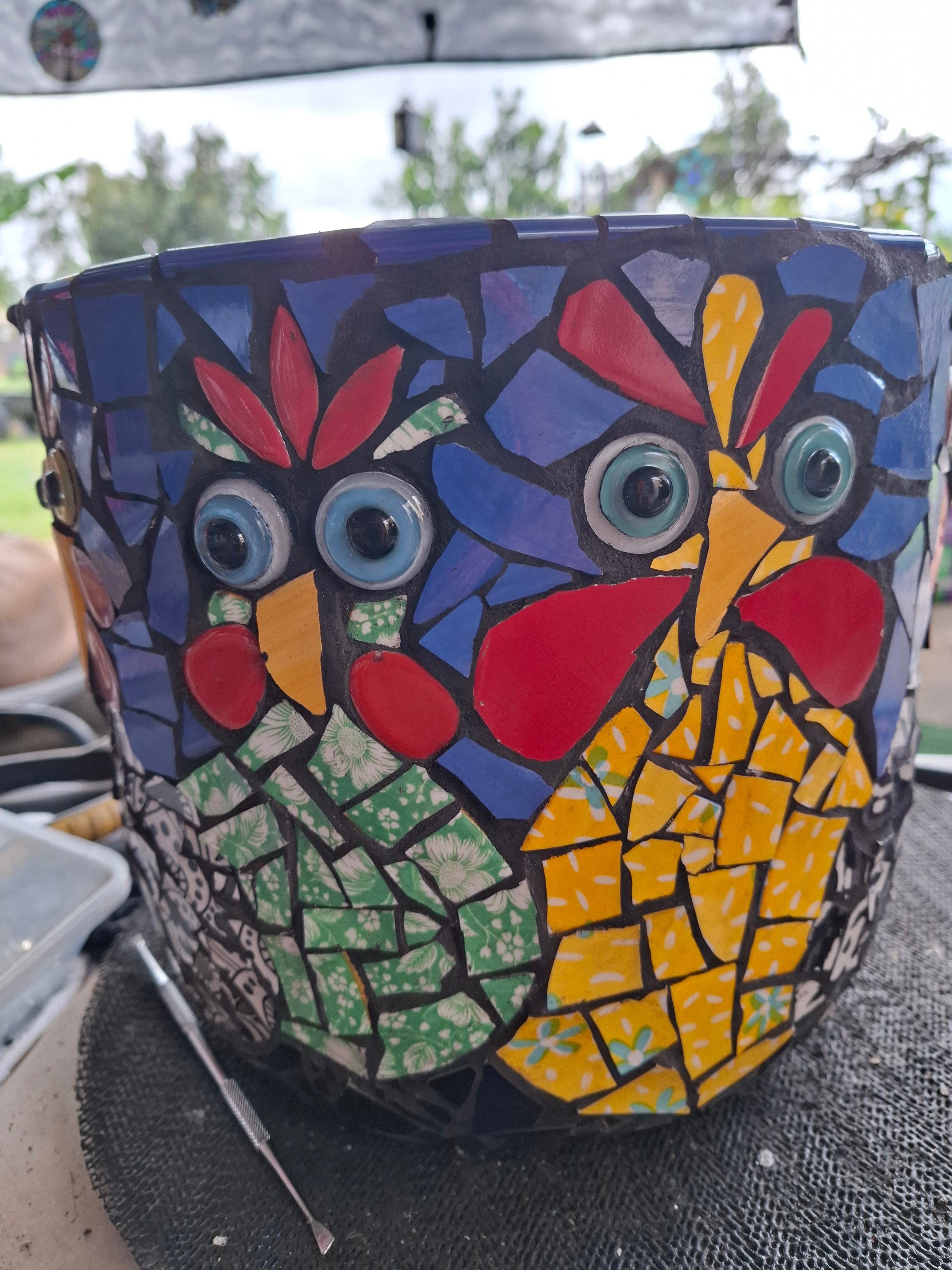 Gorgeous Chook Pot by Narelle Gill using these eyes - Hey Cheryl, having so much fun with the Turkish eyes. Pot need a little more cleaning up. Thank you Narelle.
